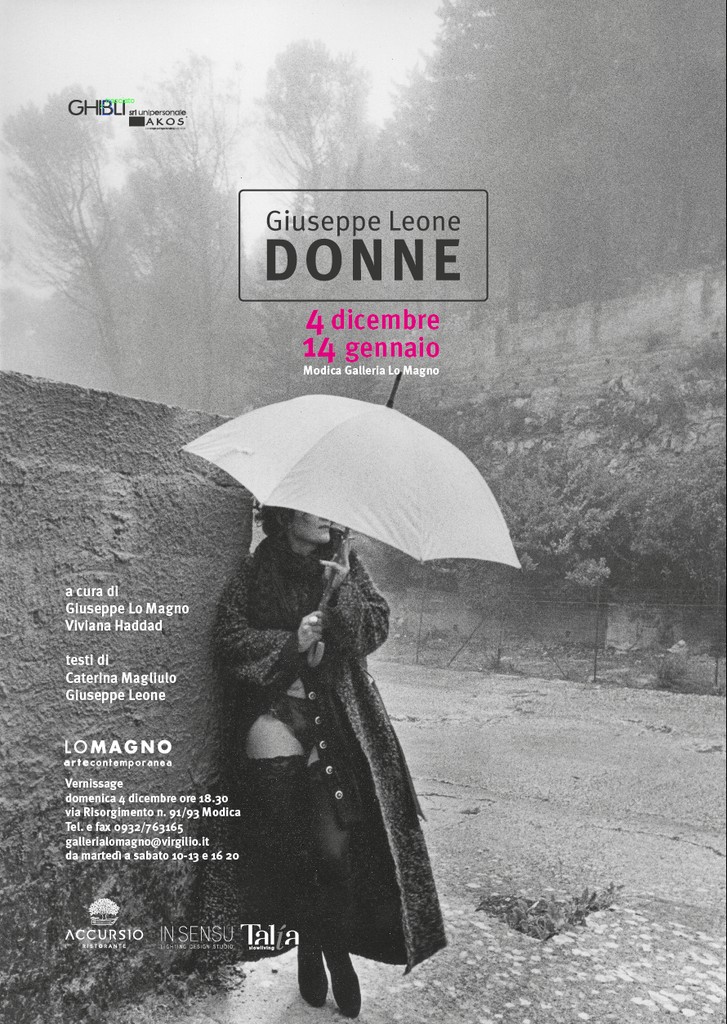 Si intitola “Donne”, la mostra di Giuseppe Leone, ospitata dal 4 dicembre al 14 gennaio nella Galleria Lo Magno di Modica, in via Risorgimento 91- 93. La mostra, curata da Giuseppe Lo Magno e Viviana Haddad, propone un’ampia collezione di foto, realizzate in un lungo arco temporale (dal 1968 al 2015) dedicate tutte alla figura muliebre, all’erotismo, alla sensualità femminile. La mostra sarà inaugurata domenica 4 dicembre, alle 18,30. I testi del catalogo sono stati curati dallo stesso Leone e da Caterina Magliulo.