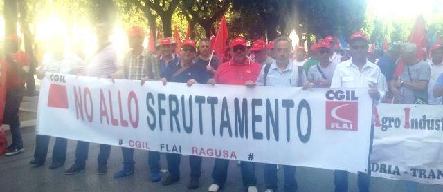 Una delegazione della Flai Cgil di Ragusa ha partecipato a Bari alla manifestazione nazionale con la Fai – Cisl e Uila – Uil portando nel capoluogo pugliese le problematiche presenti in provincia di Ragusa dove “sottoccupazione, precariato, non riconoscimento di elementari diritti, sfruttamento, infiltrazioni mafiose nei mercati e violenze di ogni tipo sono purtroppo presenti nel comparto che costituisce uno dei volani dell’economia del territorio ibleo”.