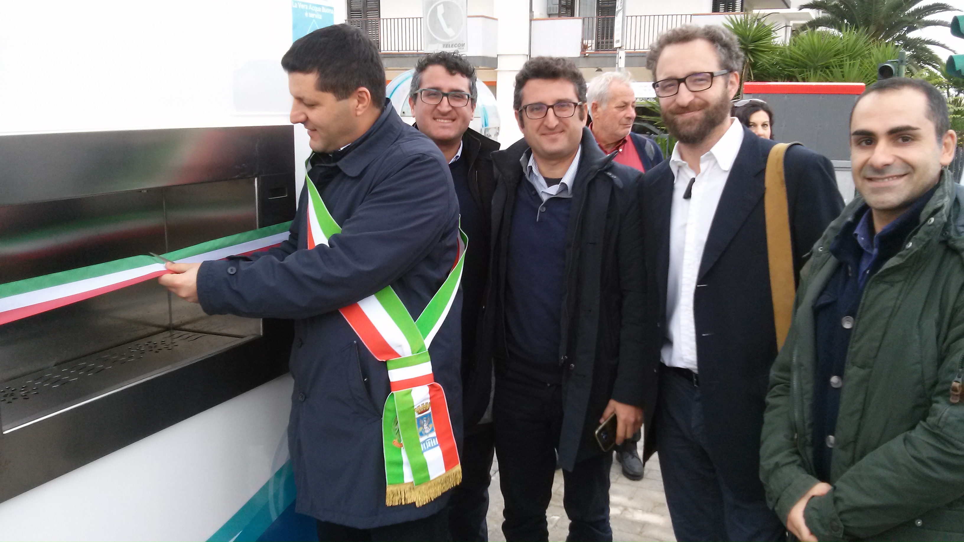 Una seconda “Casa dell’acqua” è da oggi operativa in via Mongibello angolo via Forlanini. Si tratta del secondo distributore automatico di acqua naturale microfiltrata e gasata refrigerata al servizio dei cittadini che si aggiunge a quello da tempo operativo nel Piazzale di via Zama. La struttura, voluta dall’Amministrazione comunale, è stata inaugurata dal sindaco Federico Piccitto, presente l’assessore all’energia ed ambiente Antonio Zanotto e l’ing. Giuseppe Suriani rappresentante della società “Fontenuova” che ha installato in città questa nuova “Casa dell’acqua”. E’ stato proprio quest’ultimo a spiegare al primo cittadino ed ai presenti all’inaugurazione le modalità di funzionamento del distributore automatico d’acqua che può essere prelevata tramite una card da acquistare presso gli esercizi convenzionati indicati nell’apposita bacheca affissa sulla struttura. “L’Amministrazione comunale – hanno dichiarato il sindaco Piccitto e l’assessore Zanotto nel corso dell’inaugurazione – intende incentivare l’utilizzo da parte dei cittadini di questi distributori di acqua microfiltrata al fine anche di ridurre il consumo ed i conseguenti costi di raccolta e smaltimento delle bottiglie in plastica che vengono generalmente utilizzate per l’imbottigliamento industriale delle acque minerali”.