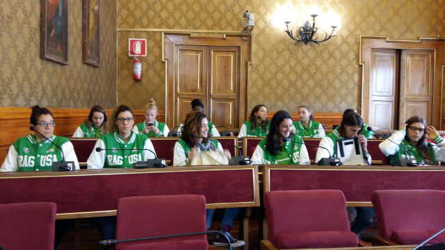 La Passalacqua è stata ricevuta nell’aula consiliare del Comune di Ragusa dal sindaco Federico Piccitto e dal vicesindaco Massimo Iannucci. L’occasione della cerimonia a palazzo dell’Aquila è stata quella della presentazione del debutto casalingo in Eurocup, in programma questo giovedì alle ore 20,30. Al momento non proprio felicissimo, a livello di risultati e prestazioni, si contrappone una invariata fiducia nelle giocatrici e in tutto lo staff. E’ emerso proprio questo dalle parole del presidente Gianstefano Passalacqua, che ha ringraziato l’Amministrazione per la costante attenzione rivolta nei confronti della propria squadra. Avversarie le francesi del Nantes che, proprio come Ragusa, si trovano a punteggio pieno nel gruppo E.