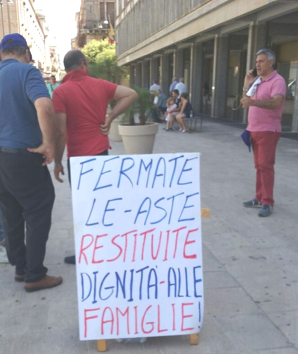 Angelo Giacchi da lunedì mattina ha iniziato lo sciopero della fame di fronte al Tribunale di Ragusa. Vittoriese, ex assessore, è un imprenditore che ha vissuto la drammatica esperienza di vedere persa la sua azienda perché svenduta all’asta. Da martedì sera anche Mariano Ferro ha iniziato lo sciopero della fame insieme a Giacchi. “Vogliamo essere ascoltati. Troppe volte abbiamo chiesto incontri che ci sono solo stati promessi senza nessun seguito”, sancisce Mariano Ferro, leader dei Forconi. “Questa volta la protesta è seria e determinata”. Il Prefetto di Ragusa, Maria Carmela Librizzi ha già convocato il gruppo dei Forconi, il leader Mariano Ferro e Angelo Giacchi per cercare una mediazione. Angelo Giacchi, molto determinato nella sua protesta contro case e aziende svendute all’asta, è cardiopatico e, anche a causa del caldo, ha già avuto bisogno di flebo.