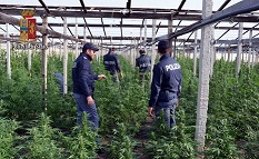 Gli uomini dei Commissariati di Vittoria e Niscemi hanno rinvenuto in contrada Dirillo, agro di Acate, all’interno di un vasto appezzamento di terreno, un impianto serricolo di oltre 5000 mq all’interno del quale era coltivata della cannabis indica, ossia della marijuana , comunemente conosciuta come “Skunk”, una pianta creata attraverso incroci tra preesistenti varietà di cannabis e che si caratterizza per l’ottima resa in principio attivo e l’odore particolarmente pungente, oggi tra le varietà maggiormente diffuse nel mercato illecito di questo stupefacente. La coltivazione era condotta mediante le più aggiornate tecniche agronomiche; le piante disposte in filari regolari erano parzialmente occultate o meglio, si cercava di confonderle attraverso l’impianto, nelle stesse serre, di due filari di piante di pomodoro prospicienti i lati perimetrali. E’ stato sorpreso, intento a vigilare la “coltivazione” un vittoriese, Giovanni Rubbino, di 57 anni con precedenti penali per reati in materia di armi, contro il patrimonio e la persona. Si è accertato che l’uomo aveva stipulato un contratto di affitto registrato all’Agenzia delle Entrate di Vittoria dell’azienda agricola in questione, che è di proprietà di soggetti niscemesi, allo stato risultati estranei alla vicenda. All’interno delle serre sono state rinvenute più di 7200 piante coltivate da circa due mesi e prossime alla raccolta ossia quattro tonnellate e mezzo che una volta essiccata ne avrebbe prodotto 1500 chilogrammi circa da commercializzare. Tutta l’azienda era controllata mediante un moderno sistema di videosorveglianza. E’ possibile sostenere che dallo stupefacente rinvenuto sono ricavabili più di un milione e cinquecentomila “canne”, che al dettaglio avrebbero potuto fruttare oltre 1.000.000,00 di Euro.