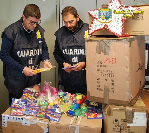 Con l’avvicinarsi delle festività natalizie, i negozi hanno iniziato ad approvvigionarsi di prodotti destinati ai regali. In tale contesto e nell’ottica della salvaguardia della salute pubblica, i finanzieri del Comando Provinciale di Ragusa hanno intensificato i controlli in materia di sicurezza prodotti. In particolare, le Fiamme Gialle di Ragusa, al termine di accurati accertamenti presso un mega store di Ispica, hanno sequestrato oltre 70.000 prodotti made in China, fra giocattoli privi del marchio “CE” e materiale elettrico (tra cui luminarie, alberelli e presepi luminosi) con il marchio di fabbrica contraffatto per un valore complessivo di circa 300.000 euro. I giocattoli, costituiti da pupazzetti di peluche, emoticons, palline contenenti liquidi pericolosi, fionde con freccia luminosa e girandole, sono stati importati in Italia e venduti come decorazioni per giardini o ornamenti vari. Talvolta i giocattoli destinati ai più piccoli possono disperdere frammenti che, qualora ingeriti dai bambini, possono determinare il grave rischio di soffocamento. Pertanto, è necessario prestare grande attenzione quando si acquista questo genere di prodotti. È consigliabile acquistare esclusivamente da negozi fidati e controllare l’etichetta, che deve essere completa delle informazioni relative al produttore, nonché delle istruzioni d’uso in italiano.