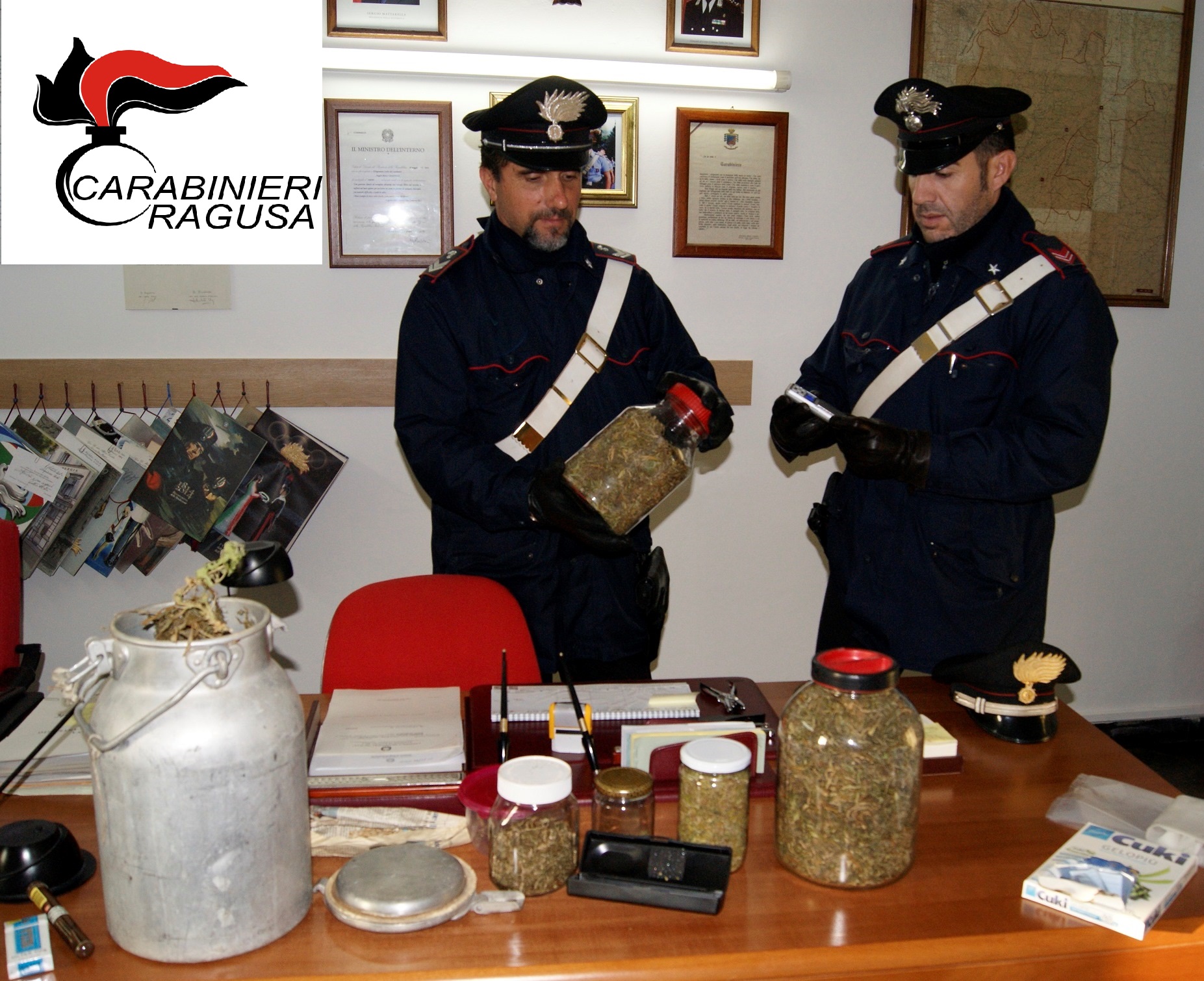 Era da un po’ di giorni che i carabinieri della Stazione di Ragusa Ibla, impegnati nell’attività di contrasto allo spaccio di stupefacenti, avevano notato qualche movimento strano in un podere nella zona di San Giacomo e così, nella prima mattinata del primo novembre, hanno controllato un ragazzo che si recava in quel terreno. I militari hanno trovato nel casolare varie quantità di marijuana conservate ovunque, persino in contenitori per il latte, per un totale di circa 1 chilo e mezzo. Oltre allo stupefacente, già pronto per essere venduto e consumato, i militari hanno trovato 50 semi di canapa che sarebbero serviti per le nuove colture dello stupefacente, un bilancino di precisione e bustine di cellophane per il confezionamento dello stupefacente. Il padre del fermato, un 52enne ragusano, incensurato, bracciante agricolo, si è accollato le responsabilità per tutta l’attività di coltivazione e detenzione dello stupefacente giustificandola con l’esser stato allettato dai guadagni facili della nuova coltura. Per lui il Pm ha disposto gli arresti domiciliari presso la sua abitazione. Lo stupefacente ed il materiale per il confezionamento in dosi sono stati posti sotto sequestro.