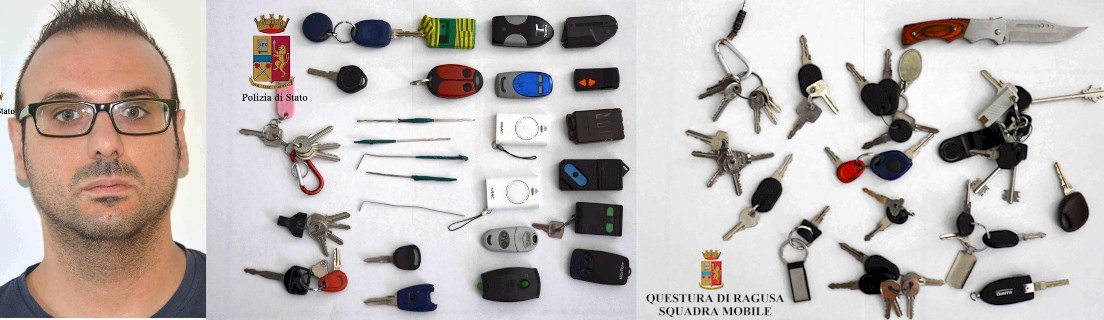La Polizia ha tratto in arresto il 31enne Samuele Giudice nato a Vittoria e residente a Ragusa per violazione del codice antimafia, in quanto è stato trovato in possesso di oggetti provento di furto e arnesi atti allo scasso. E’ stato inoltre denunciato B.R. di anni 31 comisano residente a Vittoria per ricettazione, in quanto trovato in possesso di oggetti provento di furto e porto ingiustificato di oggetti atti ad offendere. La Squadra Mobile, dopo aver rivenuto a Vittoria, su segnalazione di un cittadino, due auto rubate a Ragusa, ha controllato tutti i pregiudicati per reati specifici della zona. Alle prime ore del mattino è stato identificato Samuele Giudice in compagnia di altro pregiudicato. Considerato che Giudice è sorvegliato speciale e quindi non si può accompagnare a pregiudicati né tantomeno commettere reati, così come previsto dalla legge è stato tratto in arresto per violazione del codice antimafia. Giudice è stato trovato in possesso di 14 telecomandi di auto e garage, 3 chiavi d’auto, 1 chiave di motociclo, 9 chiavi adulterine, 1 chiave per sblocco cancelli automatici. L’arrestato non ha saputo fornire alcuna giustificazione sul possesso di questi oggetti. La Squadra Mobile sta ricercando i proprietari dei telecomandi per la restituzione. Il pregiudicato amico di Samuele Giudice è stato trovato in possesso di 1 telecomando allarme abitazione, 2 caschi completi di sistema di comunicazione, 3 auto modellini con alimentazione a scoppio, 13 chiavi auto, 17 chiavi adulterine, 3 chiavi abitazione e cassaforte. Per informazioni sugli oggetti rinvenuti si prega di contattare la Segreteria della Squadra Mobile di Ragusa al numero 0932673696.