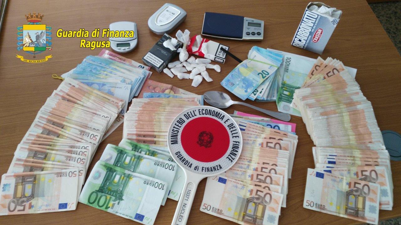 I finanzieri del Nucleo di Polizia Tributaria hanno tratto in arresto S. B., pluripregiudicato ragusano, per detenzione e spaccio di sostanze stupefacenti. Lo stesso è stato sorpreso nei pressi della propria abitazione con addosso degli involucri di droga pronta per essere venduta. La perquisizione personale e locale, ha permesso di rinvenire e sequestrare complessivamente 21 grammi di cocaina suddivisa in 25 involucri opportunamente confezionati e pronti per essere ceduti. Nell’abitazione è stata altresì rinvenuta altra cocaina ancora da confezionare e un involucro di altra sostanza utilizzata per tagliare lo stupefacente, nonché un’ingente somma di denaro contante, 25.000 euro, quasi tutto in banconote da 50.00 euro (costo medio di una dose). Inoltre, sono stati rinvenuti e sequestrati assegni bancari per un totale di oltre 6.000 euro, anch’essi proventi della vendita della cosiddetta “droga dei ricchi”. Il Sostituto Procuratore – Dott.ssa Valentina Botti -, ha disposto l’arresto e la traduzione presso la Casa Circondariale di Ragusa.