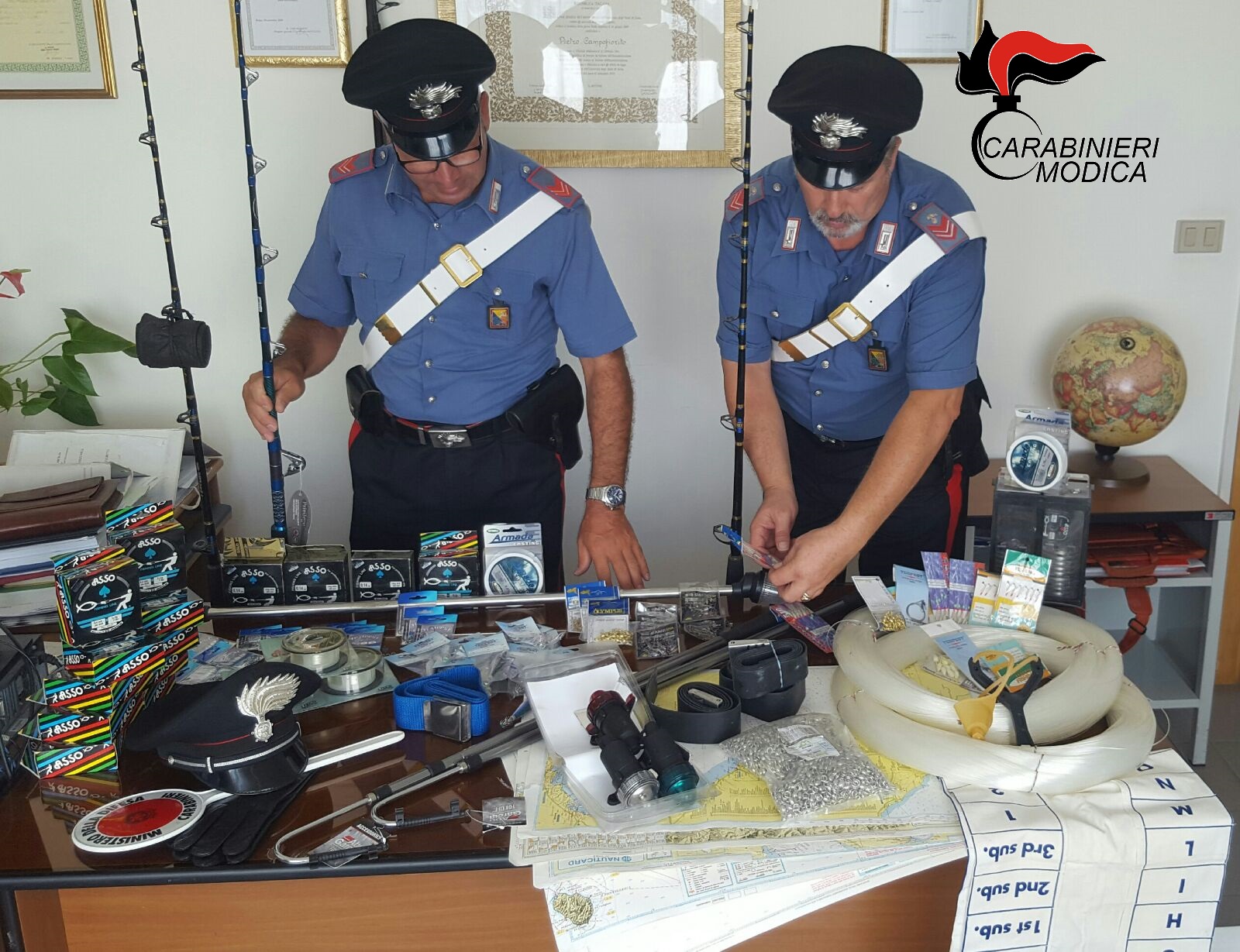 I Carabinieri di Pozzallo hanno arrestato in flagranza del reato di ricettazione Leonardo Gambuzza, 41 anni, già noto alle Forze di Polizia. I militari stavano attenzionando l’uomo già da qualche giorno sospettando che questi fosse dedito alla ricettazione di refurtiva ed alla successiva vendita. Dopo essersi appostati nei pressi dell’abitazione, i militari dell’Arma lo hanno notato mentre cercava di convincere un giovane pozzallese all’acquisto di alcune attrezzature per la pesca. A questo punto, i Carabinieri in borghese si sono avvicinati all’uomo e si sono finti interessati all’acquisto e, una volta visionate le varie attrezzature, le hanno riconosciute come rubate. Dunque, qualificatisi quali Carabinieri, hanno proceduto alla perquisizione dell’abitazione e del garage, nel corso della quale è stata rinvenuta una notevole quantità di materiale ed attrezzatura da pesca per un valore di circa 8.000/10.000 euro, il tutto risultato asportato tra marzo e aprile scorso all’interno di un esercizio commerciale di articoli per la pesca di Pozzallo. Quindi, il Gambuzza è stato condotto subito in caserma e dichiarato in stato di arresto mentre tutto il materiale è stato recuperato dai Carabinieri e restituito al legittimo proprietario. Al termine delle formalità di rito, su disposizione del Sostituto Procuratore di turno, D.ssa Valentina Botti, è stato condotto presso la sua abitazione ove rimarrà in regime di arresti domiciliari .