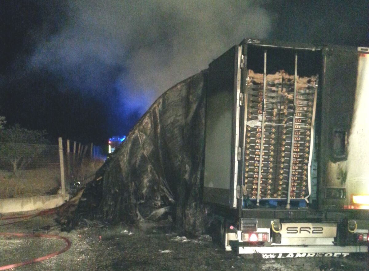 Su un autoarticolato, carico di ortaggi, uva e pomodori, mentre percorreva la S.P. 5 che da Vittoria incrocia la S.S. 514 per Catania, presumibilmente a causa di un guasto, si è sviluppato un incendio nella parte posteriore del semirimorchio. Sono intervenuti i Vigili del Fuoco per spegnere l’incendio, liberare la sede stradale e recuperare il carico.