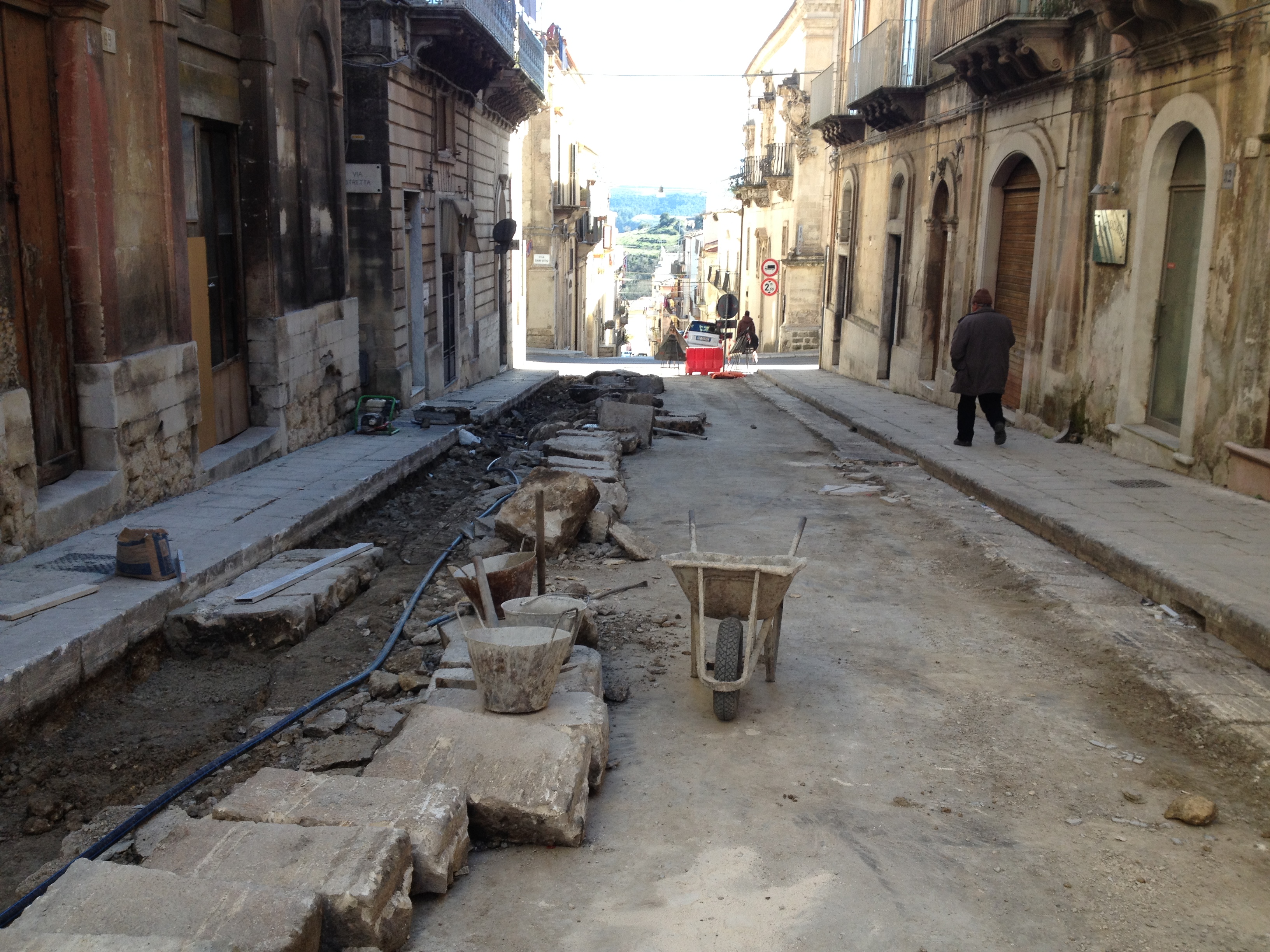 Sopralluogo del sindaco Federico Piccitto e del vicesindaco con delega ai Centri Storici, Massimo Iannucci, accompagnati dai tecnici comunali Ottaviano e Cascone, presso il cantiere di via Torrenuova, a Ragusa Ibla, dove sono in corso i lavori di rifacimento delle reti idriche, fognarie, elettriche, di raccolta acque bianche e di ripavimentazione della sede stradale con basole di calcare di pietra dura. L’impresa aggiudicataria, Isaf Costruzioni di Fiumefreddo di Sicilia, ha consegnato parzialmente l’opera avendo ultimato tutto il tratto di via Torrenuova, a partire dalla chiesa di Santa Petronilla fino all’angolo con via Orfanotrofio. Rimane da completare il tratto di via Porta Modica la cui ultimazione è prevista entro gennaio 2016. L’importo contrattuale dei lavori ammonta a 594.411, 23 euro. “Un altro intervento ormai in fase di completamento – afferma il sindaco Federico Piccitto – che viene riconsegnato al pieno utilizzo dei residenti e dei visitatori di Ragusa Ibla, e che si aggiunge ai tanti già effettuati nei mesi scorsi. Un plauso particolare, oltre ai tecnici dell’Ufficio Centri Storici, va alla ditta che ha realizzato, in tempi rapidi e con grande attenzione, un intervento molto complesso, nonché atteso dai residenti della zona da diversi anni. L’obiettivo centrale resta quello di migliorare non solo l’immagine, ma anche la vita dei residenti e degli utenti del nostro gioiello barocco, così come nel resto della città”. “Il programma di interventi – sottolinea il vicesindaco con delega ai Centri Storici, Massimo Iannucci – che questa Amministrazione intende realizzare ad Ibla, non guarda esclusivamente ai lavori di miglioramento del decoro urbano ed alla riqualificazione di alcune delle zone più frequentate del nostro centro barocco, ma anche ad interventi, come quello di via Torrenuova, ben più articolati e che intendono migliorare la qualità della vita dei residenti della zona”.