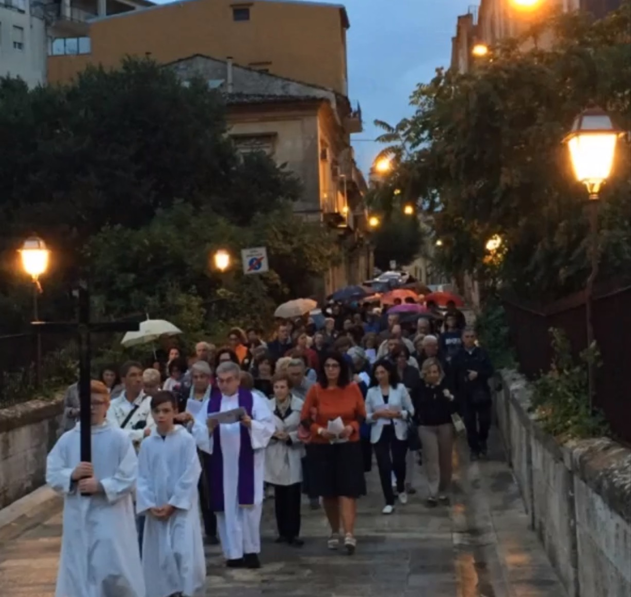 Nonostante le condizioni meteo non proprio favorevoli, è stato abbastanza partecipato il giubileo parrocchiale promosso domenica scorsa dalla chiesa di piazza Cappuccini, nel centro storico superiore di Ragusa, in concomitanza con l’avvio dei solenni festeggiamenti in onore di San Francesco d’Assisi, patrono d’Italia. I fedeli, guidati dal parroco, Salvatore Converso, hanno animato il tragitto dalla chiesa verso la Cattedrale, transitando per il Ponte Vecchio. Poi il passaggio dalla porta santa culminato con la celebrazione eucaristica. Questo mercoledì 28 settembre, sempre allo stesso orario, sarà la volta di don Mauro Nicosia che presiederà la celebrazione eucaristica con la partecipazione della comunità parrocchiale di Santa Maria di Portosalvo. Giovedì, poi, la santa messa delle 18,30 sarà officiata da don Raffaele Campailla con la comunità parrocchiale di Maria Santissima Nunziata. Alle 20,30, inoltre, sarà disputata la quarta edizione del trofeo San Francesco d’Assisi, corsa podistica per le vie della parrocchia. Le iscrizioni in parrocchia dalle 17 alle 20. La partecipazione è aperta a tutti, piccoli e grandi. Venerdì, la santa messa delle 18,30 sarà presieduta da don Gino Ravalli con la comunità parrocchiale di San Pietro apostolo. Alle 20,30 ci sarà l’esibizione del coro “Mariele Ventre” di Ragusa diretto dalla maestra Giovanna Guastella. Alle 21, poi, lo spettacolo musicale con il gruppo folk “N’unnè lapa né musca”. Sabato 1 ottobre, in coincidenza con l’avvio del triduo, sono in programma una serie di iniziative. Alle 16 i ragazzi avranno l’opportunità di giocare in piazza con i gonfiabili. Alle 18,30 ci sarà la recita del Rosario e la coroncina a San Francesco d’Assisi. Alle 18,30 la santa messa sarà presieduta dal sacerdote novello don Giuseppe Iacono. Alle 21, poi, prenderà il via la quarta edizione della manifestazione canora “Una voce per San Francesco”, con la presentazione di Mario Vita, rivolta alle categorie adulti e bambini. A presiedere la giuria sarà l’autore Michele Arezzo.