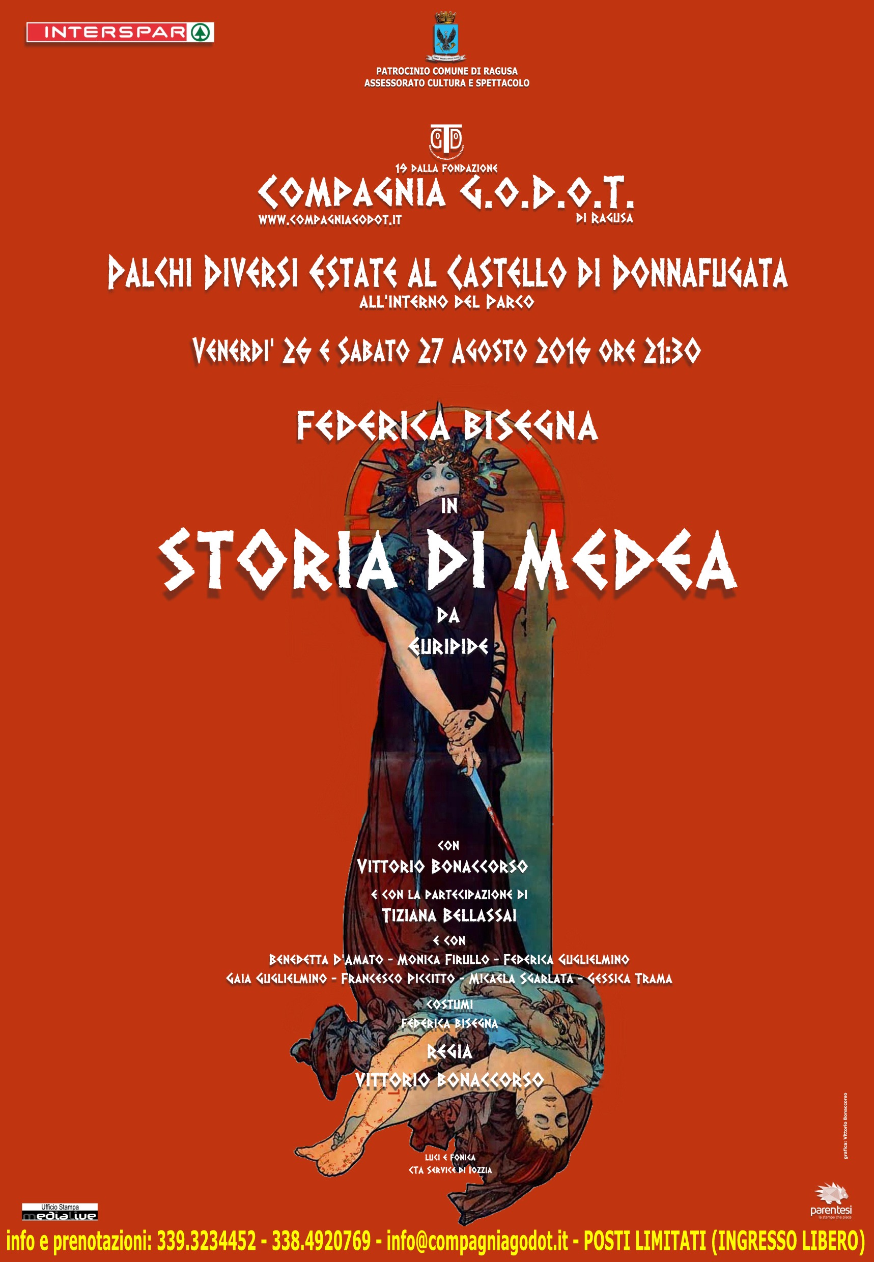 Venerdì 26 e Sabato 27 Agosto 2016 ore 21:30 Storia di Medea con Federica Bisegna e Vittorio Bonaccorso e la partecipazione di Tiziana Bellassai e con Francesco Piccitto, Benedetta D’Amato, Monica Firullo, Gaia Guglielmino, Federica Guglielmino,Gessica Trama, Micaela Sgarlata e con i piccoli Giovanni Fiaccavento e Giovanni Candiano. Si tratta dell’ultimo appuntamento della Mini Rassegna organizzata dalla Compagnia GoDoT di Ragusa al castello di Donnafugata. Ingresso libero.PASSALACQUA, INIZIANO GLI ALLENAMENTI PRECAMPIONATO