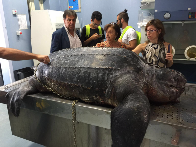 Era femmina, giovane e veniva da lontano. Pesava circa 250 chili e misurava un metro e mezzo. Se avesse continuato a vivere, Carlotta avrebbe “partorito” tanti altri giganti del mare. La tartaruga Liuto – della specie Dermochelys coriacea, la più grande tra le marine – arrivata in fin di vita a Lampedusa cinque giorni fa, non ce l’ha fatta. Dall’autopsia effettuata al “Centro di referenza nazionale sul benessere, monitoraggio e diagnostica delle malattie delle tartarughe marine”, dell’Istituto Zooprofilattico sperimentale della Sicilia, è emerso che la Liuto, di oltre vent’anni, era finita in una rete a strascico. Parente stretta dei dinosauri (era contemporanea ai grandi rettili), è raro vedere la Dermochelys coriacea nel Mediterraneo. Vive normalmente nelle acque oceaniche, arriva dallo stretto di Gibilterra e, dopo aver raggiunto la maturità, torna nell’Atlantico. Dall’autopsia, gli esperti cercheranno di raccogliere tutti i dati necessari per conoscere quanto più possibile su quest’esemplare, che può arrivare a pesare da adulto anche 600 chili e vivere fino a 250 anni. Un ritrovamento eccezionale, molto verosimilmente dovuto alle mutate condizioni climatico-ambientali. Dall’esame anatomo-patologico, è stato riscontrato che Carlotta nell’ovaio aveva piccole uova e che aveva ingerito molta plastica e pezzi di rete. Circostanza che conferma come tutti i rifiuti che finiscono in mare per le tartarughe sono pericolosissimi. Carlotta verrà imbalsamata e trasferita al Centro di recupero di Lampedusa. Qualche cenno storico. La prima Liuto venne catturata nei dintorni di Ostia e donata all’Università di Padova da Papa Clemente XIII. La catalogazione e la sua raffigurazione fu opera di Domenico Agostino Vandelli, che nel 1761 gli diede la denominazione Dermochelys Coriacea Testudo. L’esemplare viene ancora oggi conservato al Museo di Zoologia dell’Università di Padova.