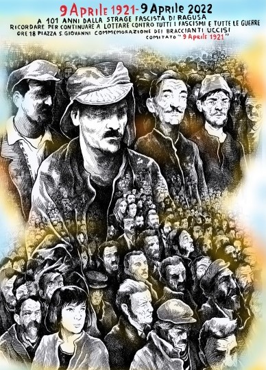 Anche quest’anno il Comitato “9 aprile 1921” con l’adesione del Gruppo anarchico di Ragusa, della Confederazione Unitaria di Base, del Comitato di Base NO MUOS di Ragusa, del Circolo Lebowski, della Federazione del Sociale dell’USB, dell’AMR Controvento torna in piazza a ricordo dei tre braccianti assassinati il 9 aprile 1921 dalle squadre fasciste sotto le direttive di Filippo Pennavaria e della borghesia agraria ragusana. “Ricordare per noi – affermano gli organizzatori – non è un semplice esercizio di nostalgia, ma serve a leggere nelle vicende passate anche il presente, e a organizzare l’impegno per il futuro, un futuro che non può essere senza memoria”. Sabato 9 aprile 2022 in piazza S. Giovanni, sotto la lapide che ricorda Rosario Occhipinti, Carmelo Vitale e Rosario Gurrieri, voluta dai cittadini di Ragusa vent’anni fa, verrà deposta una corona di fiori e ribadito l’impegno a lottare contro tutti i fascismi e tutte le guerre.