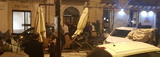 AUTOMOBILE CONTRO TRE AUTO IN SOSTA E DEHORS IN CORSO UMBERTO A MODICA