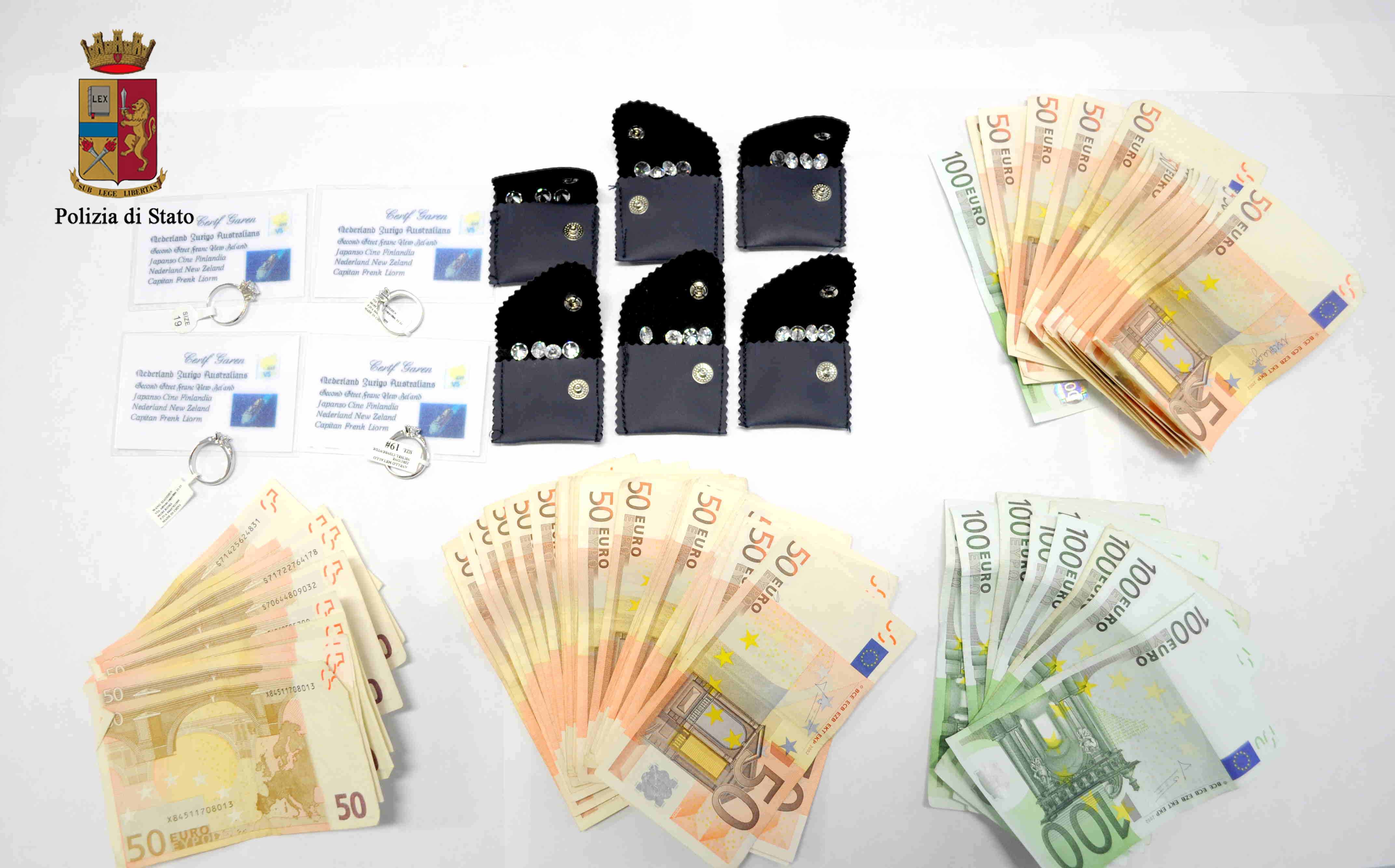 Una vera e propria banda di truffatori, specializzata nello smercio di diamanti falsi e gioielli patacca, quella scoperta e denunciata dagi agenti di polizia diretti dal Commissario Capo Filiberto Fracchiolla. La banda, composta da tre uomini di Palermo, dopo aver colpito praticamente in tutta la Sicilia, accumulando denunce e divieti di rientro in molti comuni, si sono portati a Ragusa con l’intento di mettere a segno l’ennesimo colpo ai danni soprattutto di persone anziane, a cui già in altre occasioni avevano sottratto migliaia di euro. Uno di loro, il più esperto, fingendo di essere un marinaio straniero sbarcato da poco con la necessità di incontrare subito un gioielliere per vendergli dei diamanti e anelli che non può portare con sè in viaggio, ferma per strada la vittima designata, di solito una persona anziana, e gli racconta della necessità di dover ripartire immediatamente e delle difficoltà che ha a rintracciare il suo amico gioielliere. Finge di non parlare bene l’italiano. A questo punto intervengono i complici. Il primo, parlando in inglese fa da traduttore, mentre l’altro si finge un gioielliere, munito anche di lente di ingrandimento. Il complice analizza con cura i gioielli, mostrati all’interno di cofanetti, spacciandoli per diamanti di vario taglio e anelli con pietre preziose ma che in verità sono vere e proprie patacche prive di valore. A questo punto valutati i gioielli per un valore di oltre diecimila euro, propone l’acquisto alla vittima designata per tremila euro. In molti casi le vittime sono cadute nel raggiro. Proprio nella giornata di ieri, da un accertamento fatto alla banca dati degli alloggiati negli strutture ricettive, i poliziotti hanno verificato la presenza in un albergo ragusano dei tre palermitani. I tre, sorpresi dalla presenza dei poliziotti, hanno cercato di disperdersi uno a piedi e gli altri due a bordo di un auto, ma sono stati immediatamente accerchiati dalle Volanti che sono riusciti a bloccarne la fuga. Ormai scoperti, per i tre non c’è stato altro da fare che ammettere di aver fatto un colpo nella provincia e che stavano per allontanarsi dalla zona. Dalle perquisizioni personali estese all’autovettura sono state recuperati e sottoposti a sequestro quasi cinquemila euro in vario taglio, frutto dell’attività truffaldina, diversi cristalli tagliati a modello di diamanti confezionati in piccoli sacchetti, anelli finto oro con pietre preziose e biglietti da visita a nome di “Frenk Liorm” sedicente capitano di una nave. Tutti i gioielli, esaminati da un esperto gemmologo sono stati descritti come imitazioni senza alcun valore commerciale o gemmologico. I tre uomini rispettivamente di 66, 67 e 39 anni sono stati deferiti all’autorità giudiziaria con l’accusa di truffa aggravata in concorso e a loro carico il Questore di Ragusa ha firmato il provvedimento del foglio di via obbligatorio con il divieto di ritorno nel capoluogo ibleo.