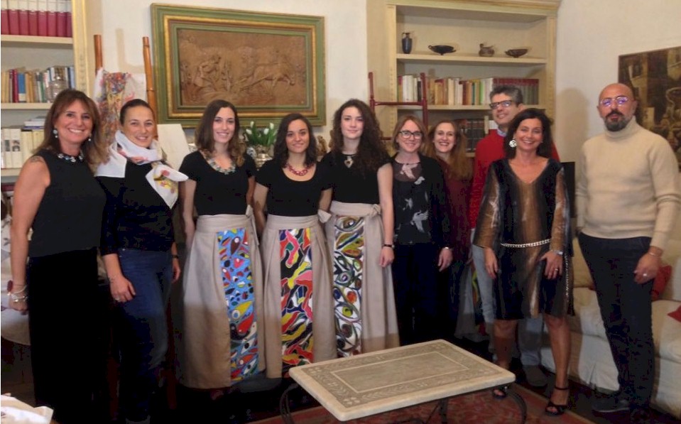 Flavia Fagiani, Francesca Bartoletti e Rachele Frigerio hanno posato a Roma con gli abiti realizzati interamente a mano da alcuni ragazzi immigrati della Fondazione San Giovanni Battista che, per tre mesi, hanno lavorato con la Rel-Azioni Cooperativa Sociale O.N.L.U.S. in un laboratorio di moda guidato dall’Architetto Giampiero Carta e coordinato da Elvira Adamo. I ragazzi, tutti di età tra i 18 ed i 23 anni e ospiti di diversi centri d’accoglienza, si sono divisi il lavoro tra pittura manuale dei tessuti (lino e cotone puro) e cucitura degli stessi. Si tratta di uno straordinario progetto di integrazione sociale che era stato presentato a Ragusa in occasione del Festival delle Relazioni. I capi di abbigliamento dipinti a mano su desing originali saranno esposti dalle ore 17 di venerdì 8 dicembre fino a domernica 10 dicembre da Beddamatri in Via Mariannina Coffa a Ragusa. Oltre a gonne, magliette, foulard decorati a manio dai venti giovani rifugiati e richiedenti asilo, saranno esposte anche alcune opere di Giampiero Carta, artista e direttore artistico del progetto “Nei Panno dell’Altro”.