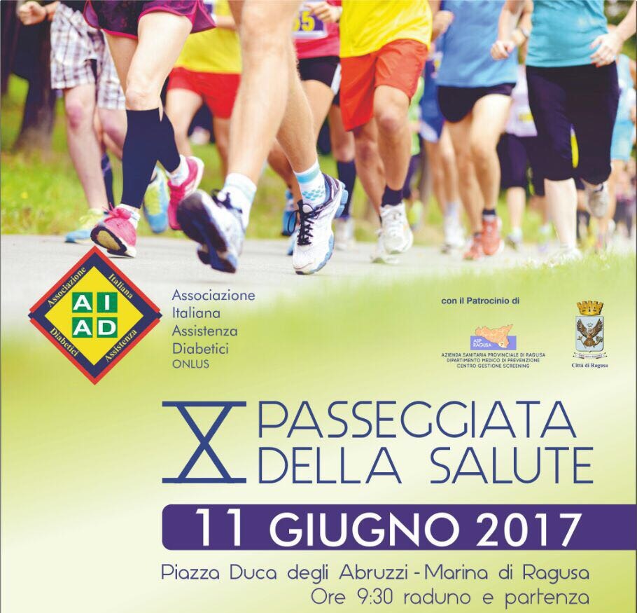 L’Aiad – Associazione Italiana Assistenza ai Diabetici – è arrivata alla Decima Passeggiata della Salute, iniziativa che si terrà domenica prossima alle ore 9:30 con raduno a piazza Duca degli Abruzzi. Le Associazioni sportive Siemu a Peri, Amunì e NoDoping, accompagneranno i partecipanti. Nella stessa giornata si svolgerà la 5^ tappa del Gran Prix Ibleo di Walk Trail denominato “della Castellana”, manifestazione organizzata dalle ASD Siemu a Peri, Amunì, Imu Avanti Tre Colli e NoDoping.