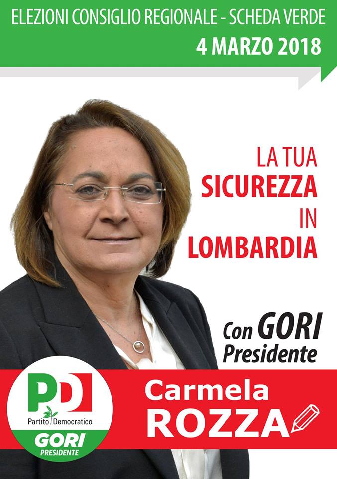 La ragusana Carmela Rozza, assessore del Comune di Milano, si è candidata nella corsa per il Consiglio Regionale della Lombardia, nelle liste del Pd. Carmen Rozza è stata assessore nella giunta milanese col sindaco Pisapia ed è attualmente assessore alla sicurezza della giunta del sindaco Giuseppe Sala.